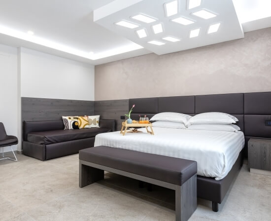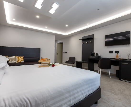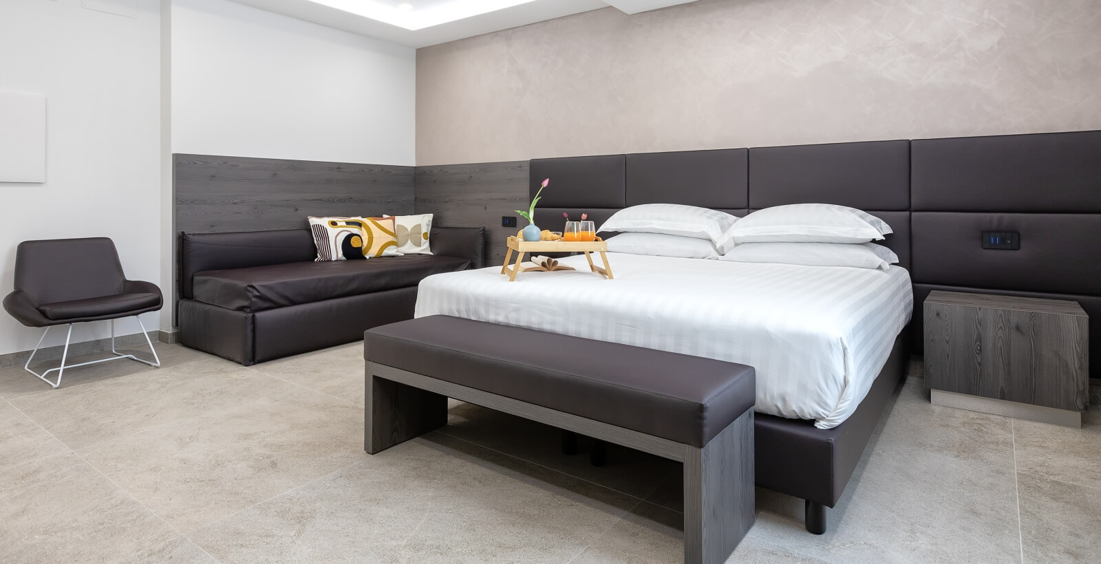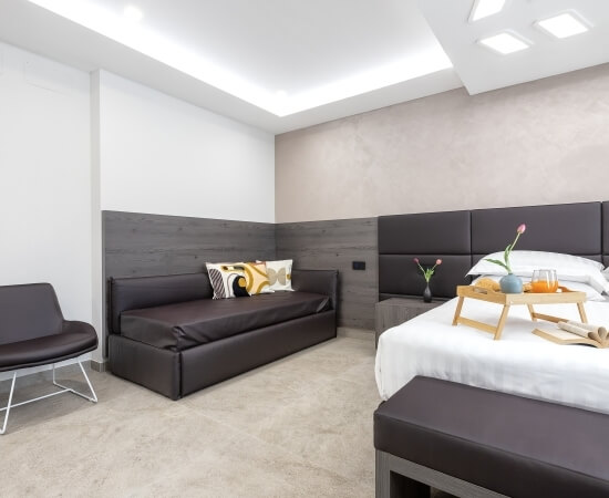 Le camere Deluxe sono ideali per famiglie o piccoli gruppi, grazie alla presenza di un divano letto che permette di ospitare fino a tre persone.