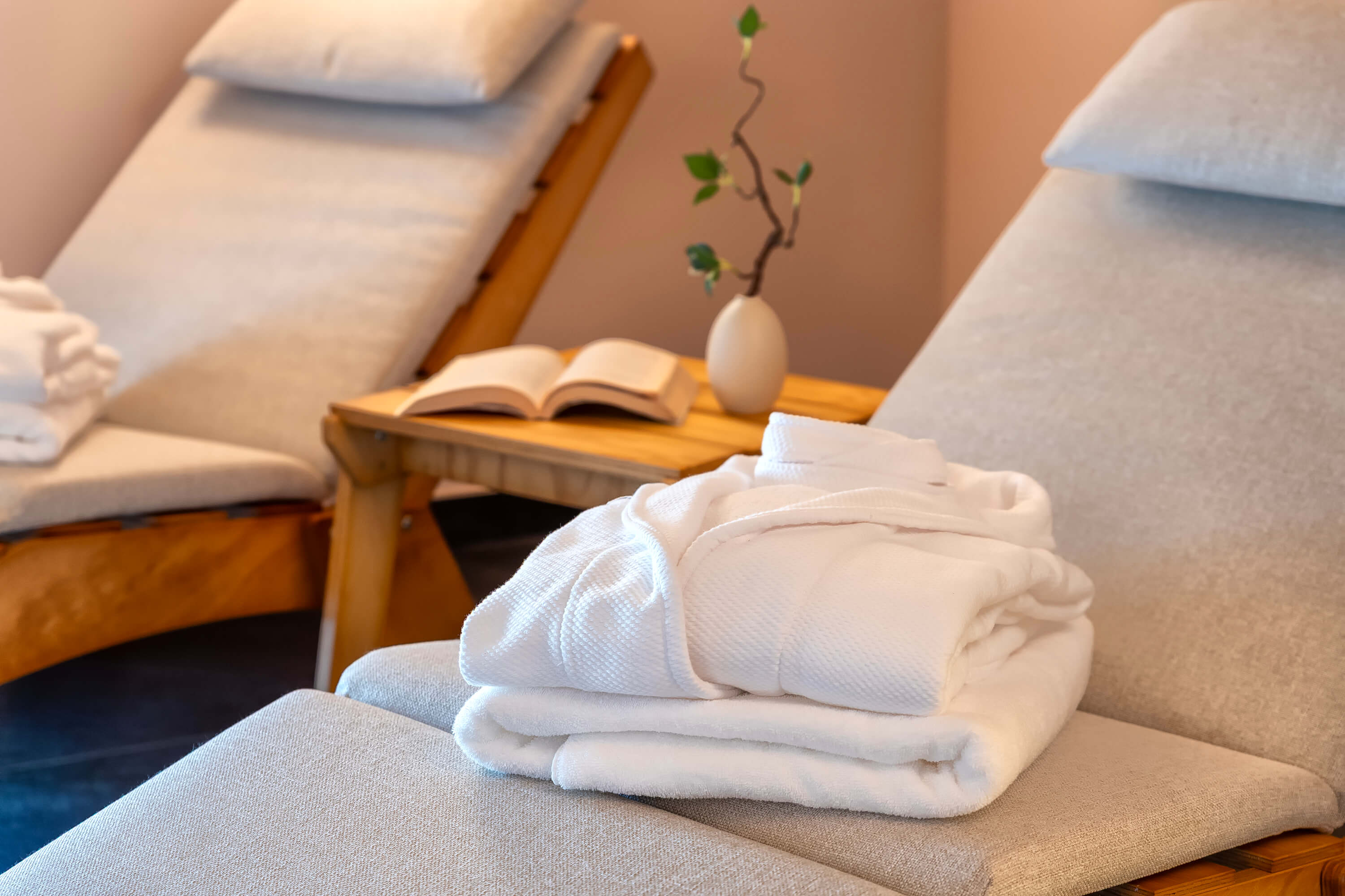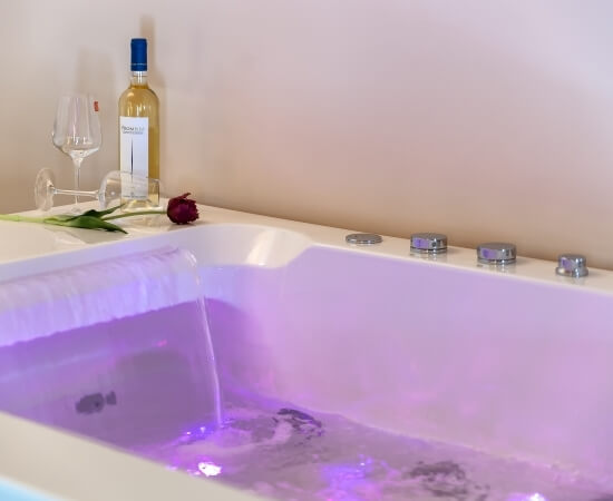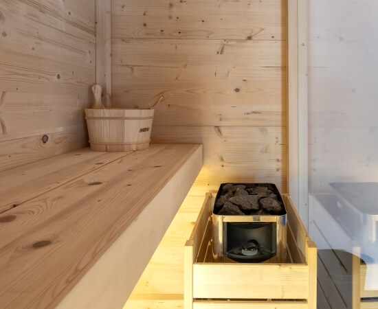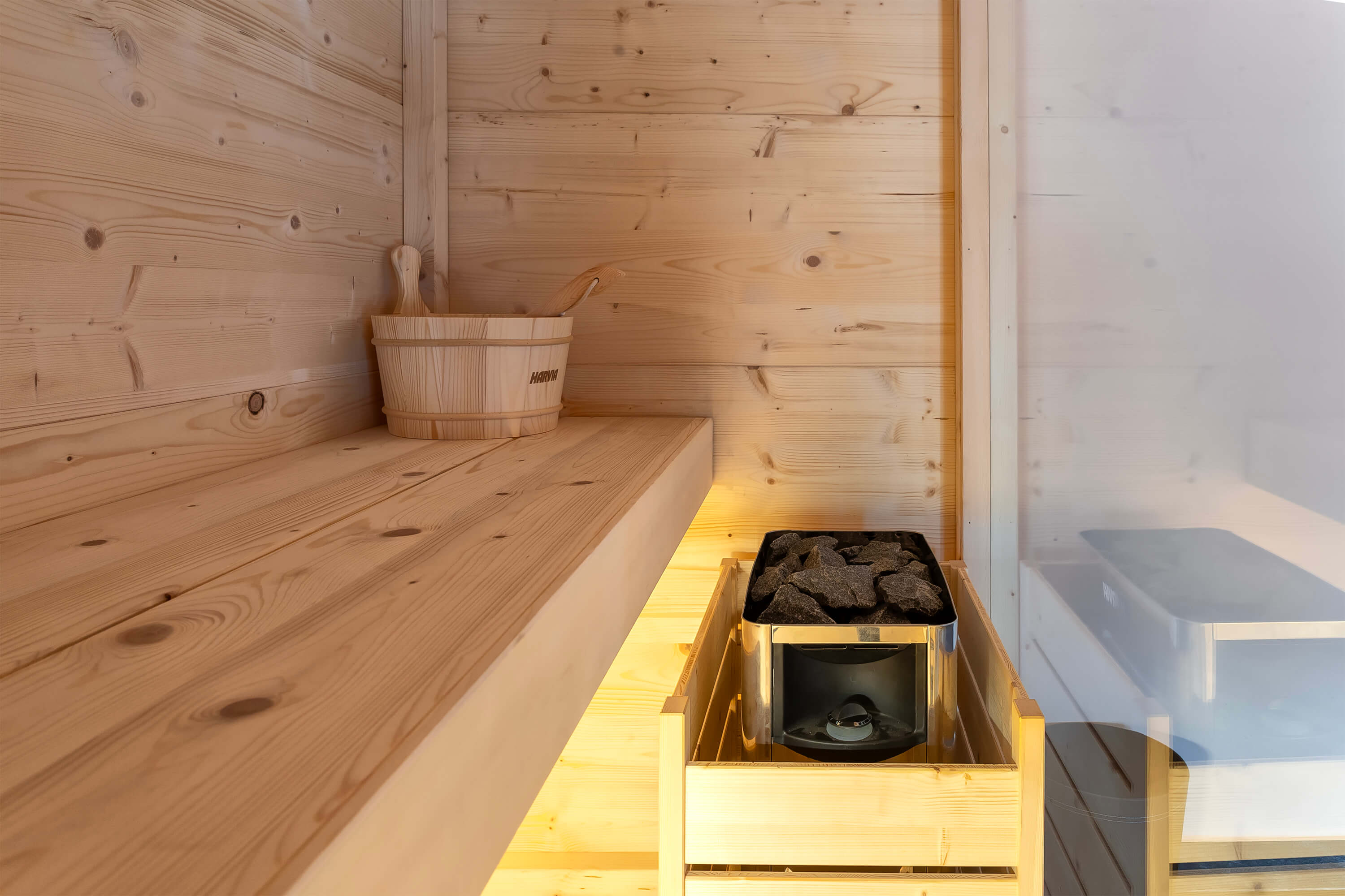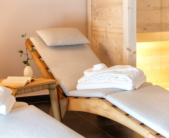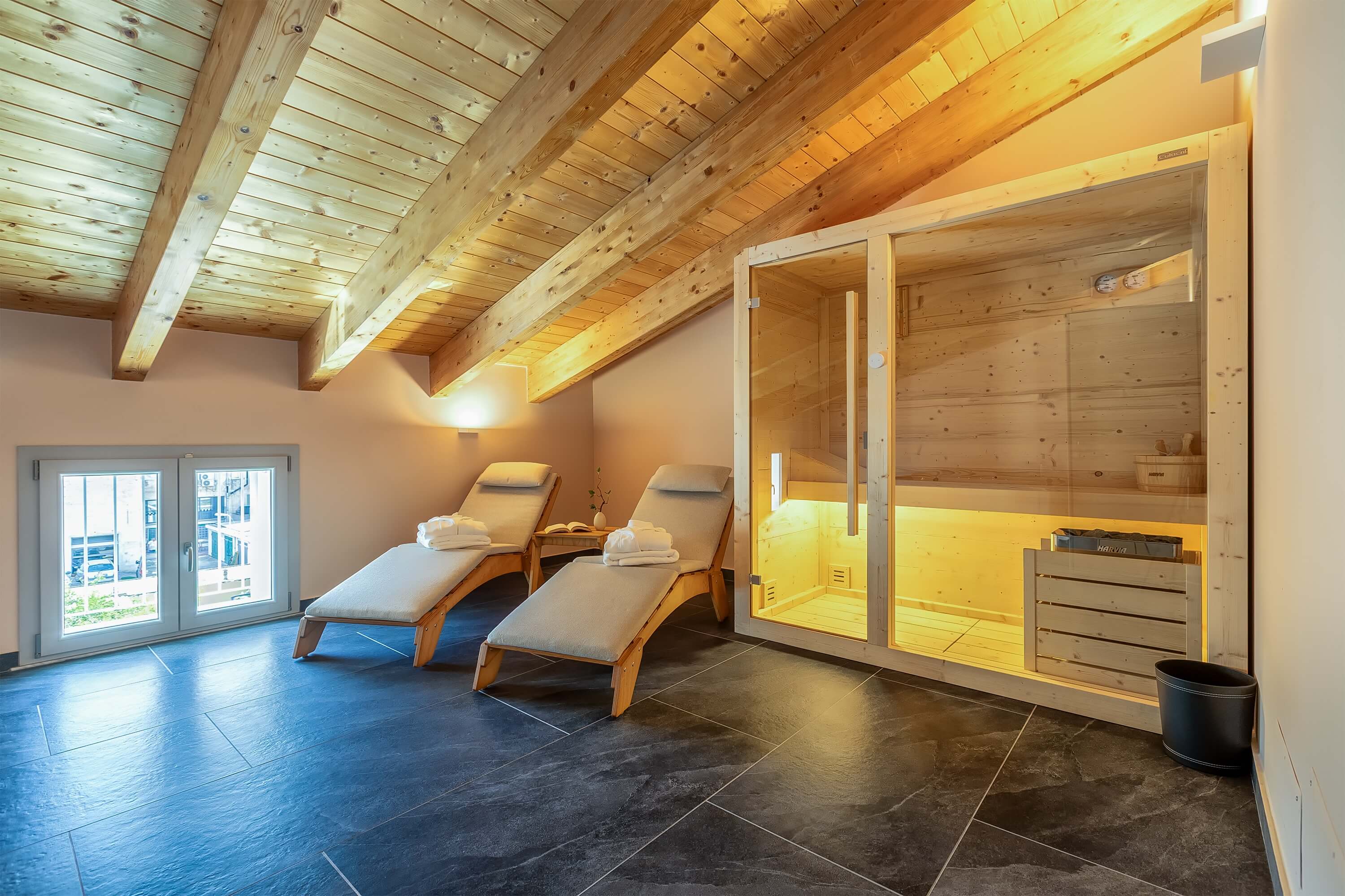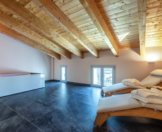 Un ambiente intimo ed esclusivo, pensato per garantire relax e tranquillità: qui potrete immergervi nella vasca idromassaggio, rilassarvi nella sauna per due persone e proseguire il vostro momento di serenità sulle comode chaise longue.